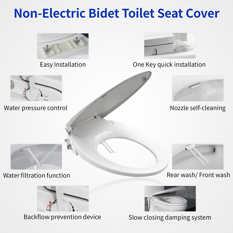 【Non Electric 】 – This economical bidet requires no electricity or batteries. a gentle closing seat, and sturdy, sittable lid.