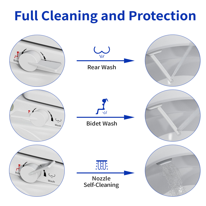 【Rear Wash】 – 3-hole nozzle special for butt cleansing, accurate spray and comfortable pressure, massage washing experience, enjoy your hygienic and comfortable life.