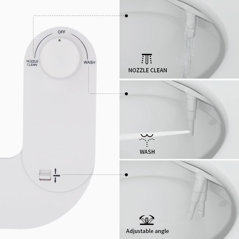 【Self-Cleaning】: The “CLEAN” button on the toilet bidet offers a self-cleaning function for the nozzle, preventing clogging and ensuring proper operation.
