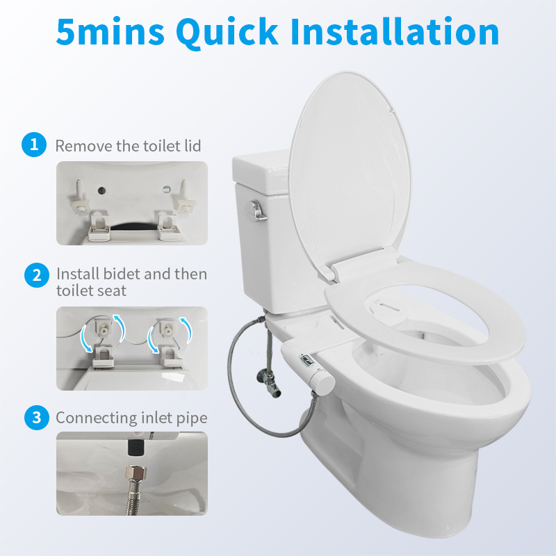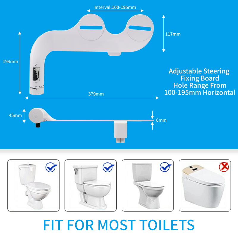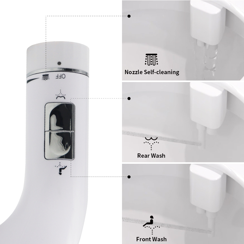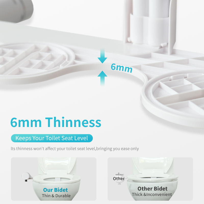 【Ultra-Thin Dual Nozzle Bidet】Our non-electric bidet features dual nozzles for thorough posterior and feminine wash. Its easy-to-use control knob lets you adjust the water pressure to get the ideal stream. The streamlined, sleek bidet is designed to fit your existing toilet seat.