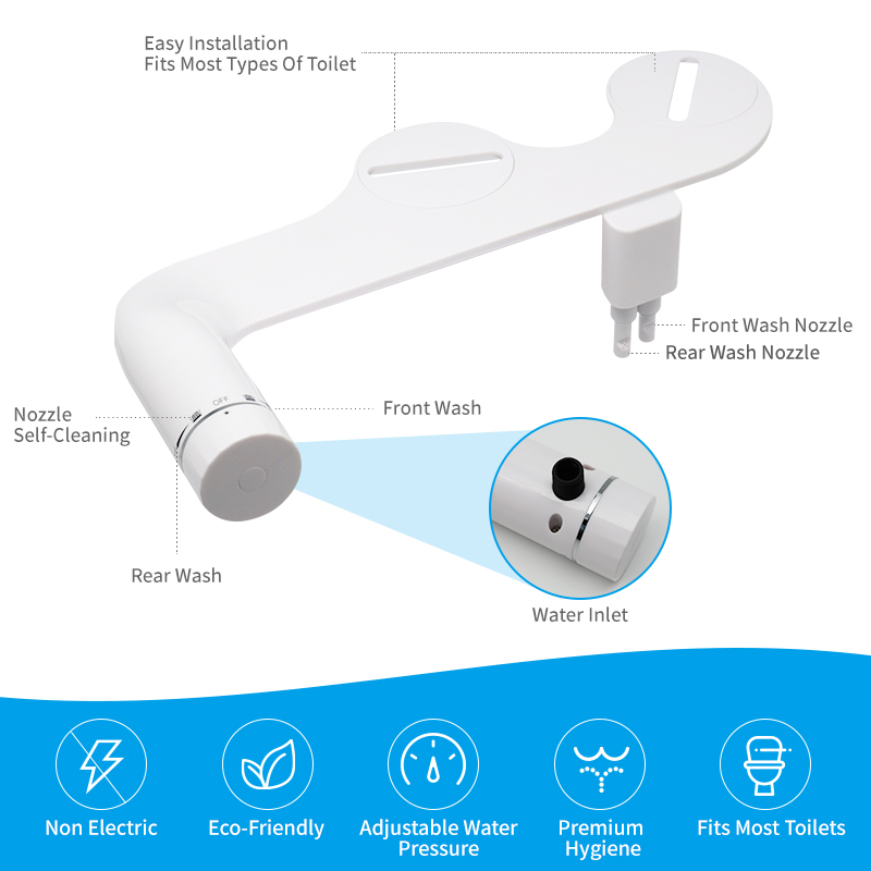 【Dual Front and Rear Wash】: The dual wash feature of this bidet sprayer for toilet offers both front and rear cleaning options. Ideal for toilets and bidets, this toilet spray feature ensures comprehensive hygiene, making it an essential bidet attachment for any household.